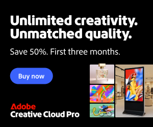 New subscribers save 50% for the first 3 months. Annual, billed monthly. See terms. The Creative Cloud Pro plan has 20+ creative apps and Adobe Firefly creative AI for images, video, and audio. Create with Adobe Photoshop, Illustrator, Premiere, After Effects, InDesign, and Acrobat Pro. |