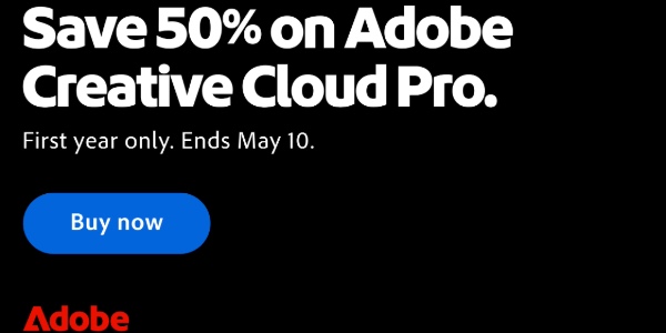 Save 50% on Adobe Creative Cloud Pro. First year only. Ends May 10. Grow into your creative potential with 20+ apps, generative AI, fonts, and Stock — all in one plan. Adobe Creative Cloud provides apps, web services, and resources for all your creative projects — photography, graphic design, video editing, UX design, drawing and painting, social media, and more. Get the total creative toolkit that grows with you. Create anything from logos to an entire branding system. Imagine what you can do with the industry-leading creative apps, including: